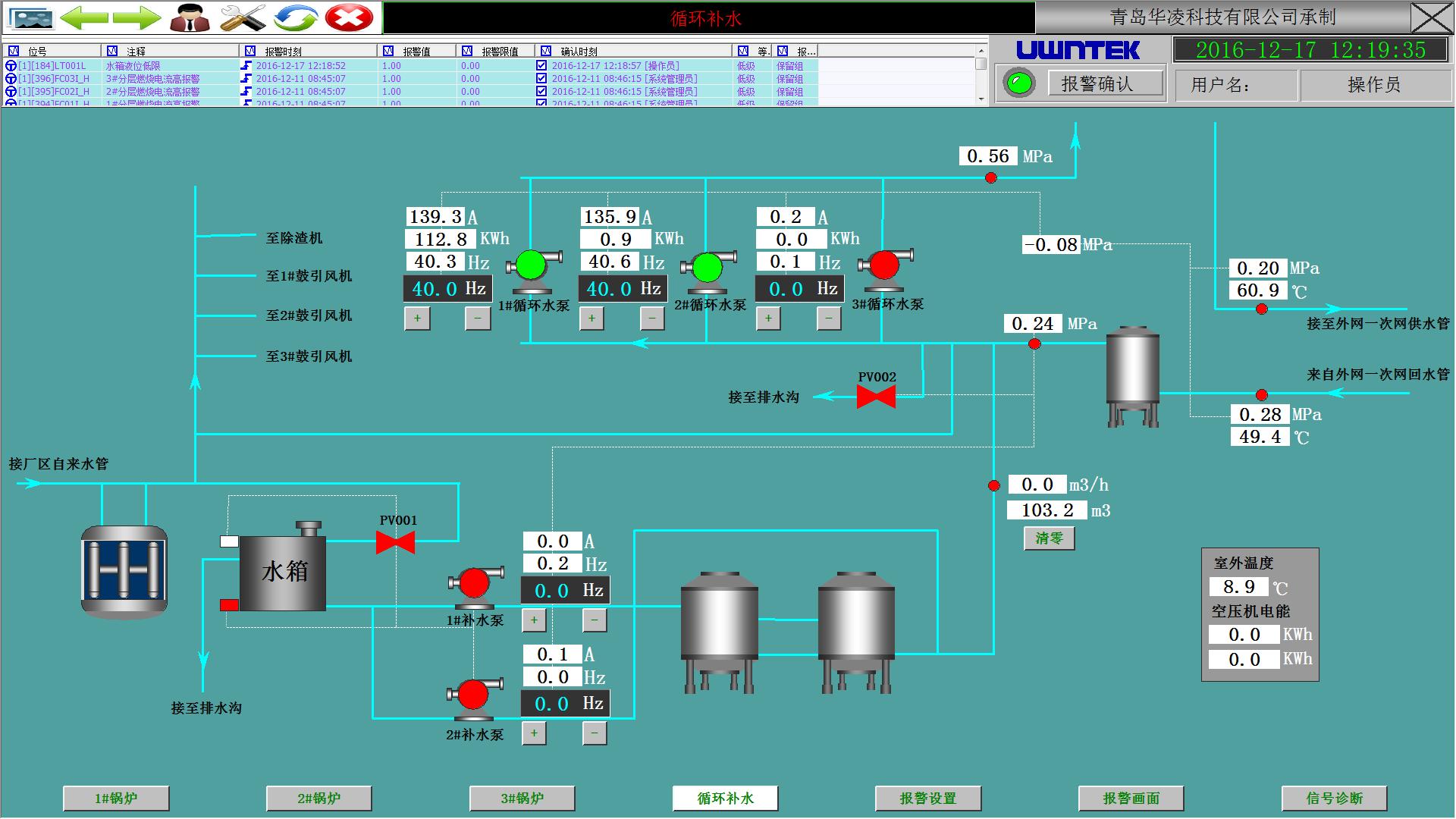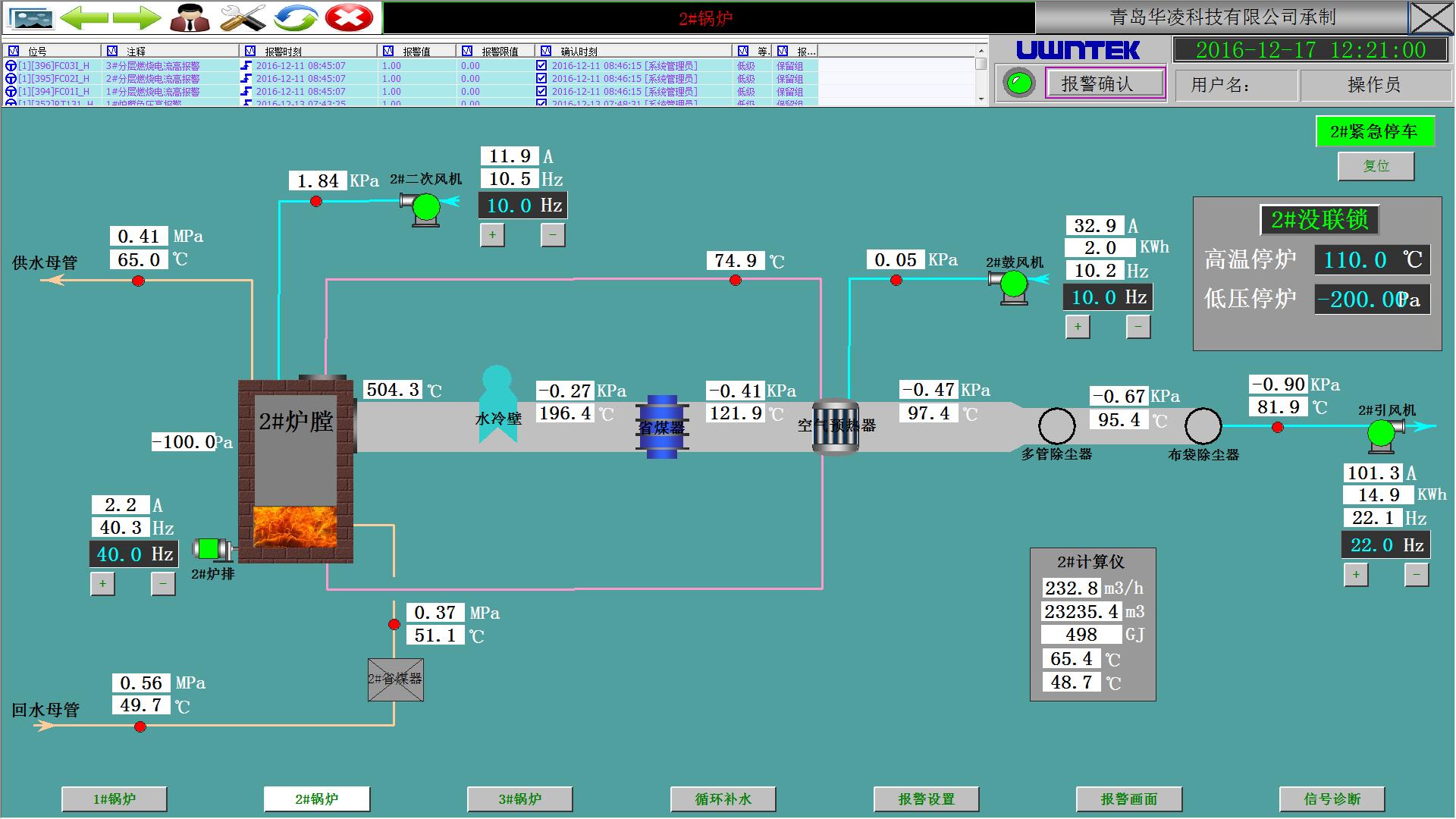 生物質鍋爐房DCS控制系統(tǒng)是將整個鍋爐房主、輔機系統(tǒng)作為一個完整的控制對象,從各參數(shù)檢測、連續(xù)調節(jié)、聯(lián)鎖保護、邏輯控制、顯示報警、監(jiān)控管理到數(shù)據(jù)通訊上均將其作為一個整體進行控制。在智能負荷智能協(xié)調控制策略的基礎上通過前饋/反饋控制、連續(xù)/斷續(xù)控制、非線性控制、方向性控制等控制機理的有機結合來協(xié)調控制鍋爐出力和出水溫度,保持質和量之間的平衡。協(xié)調出力熱網(wǎng)負荷需求與鍋爐實際出力、鍋爐燃燒控制與循環(huán)水流量以及鍋爐房各子控制回路間的平衡。在保證鍋爐房具備快速熱網(wǎng)負荷需求響應能力的同時,維持鍋爐主要運行參數(shù)的穩(wěn)定。